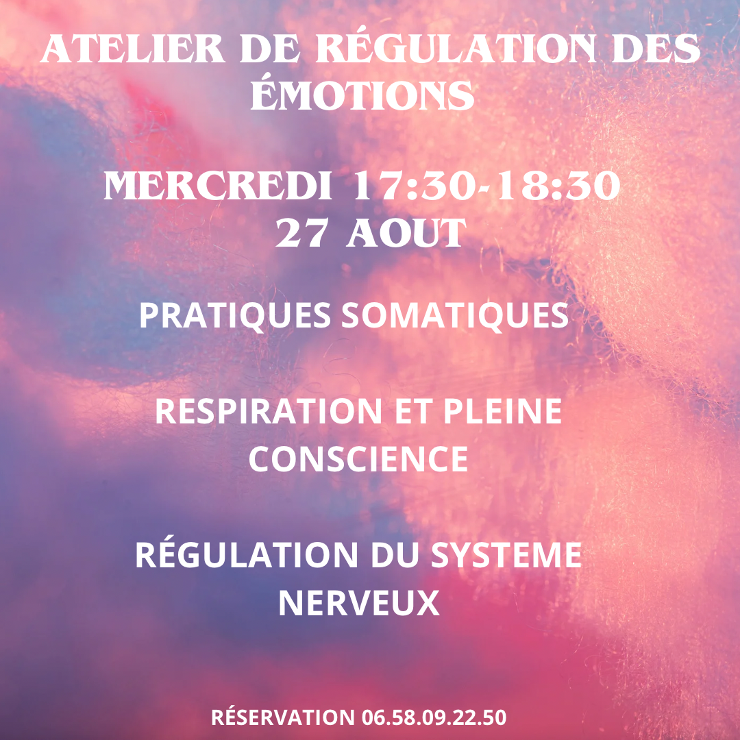 Cet atelier est un espace pour venir expérimenter l’état de calme intérieur afin de créer ce nouveau chemin vers un quotidien plus serein. À travers ma proposition de pratique somatique, respiration et pleine conscience je vous enseigne quelques rituels favorisant un état régulé du système nerveux autonome.